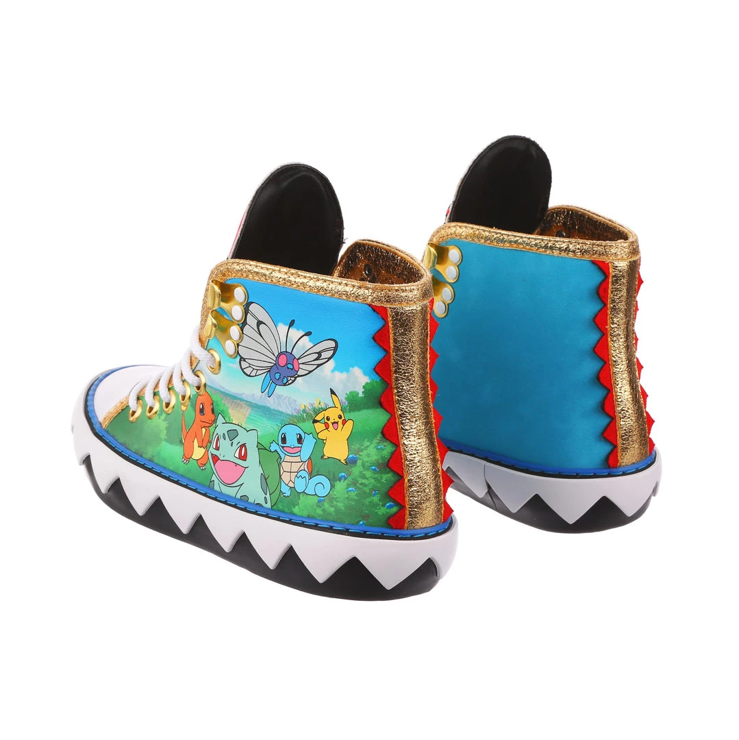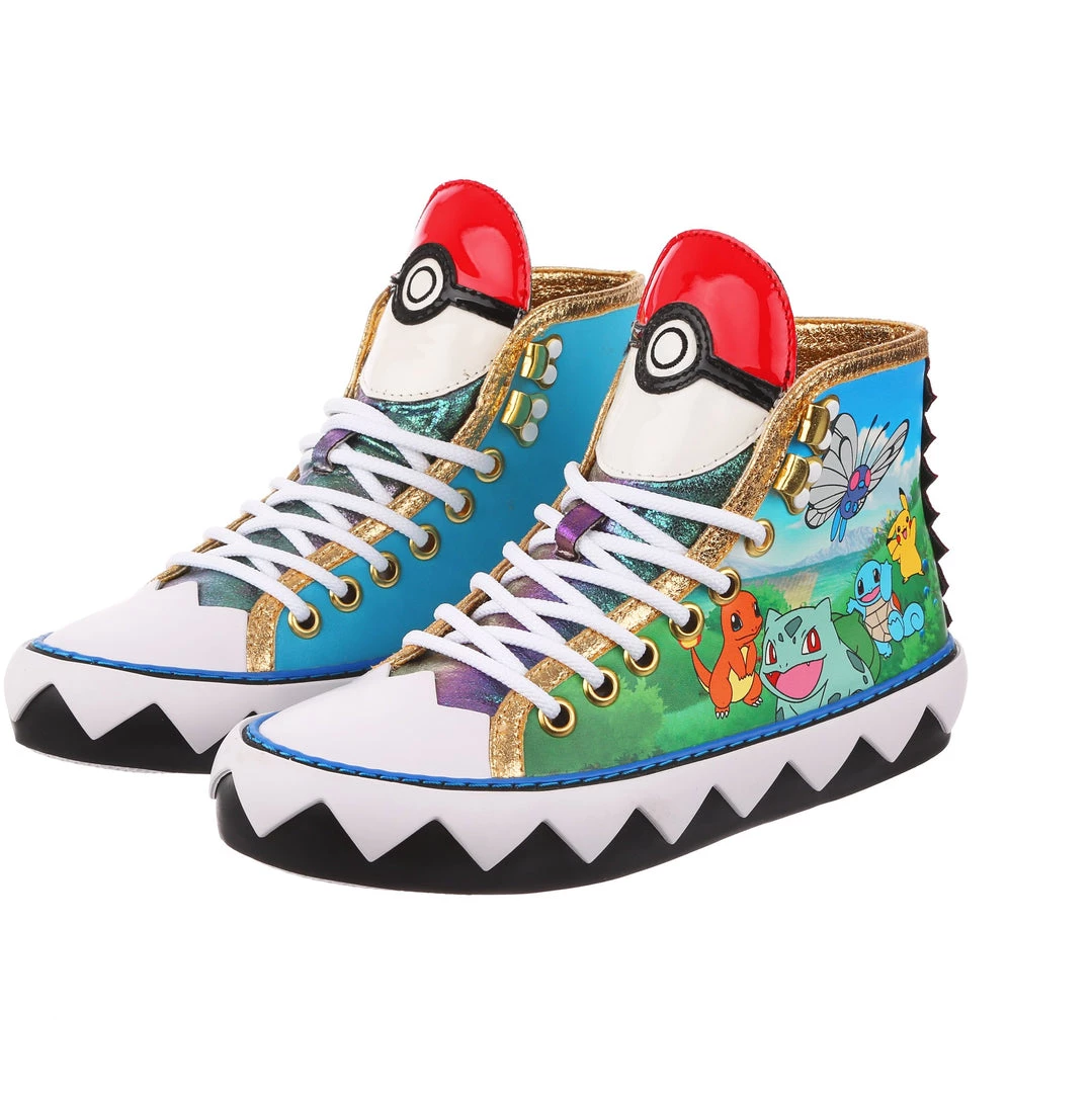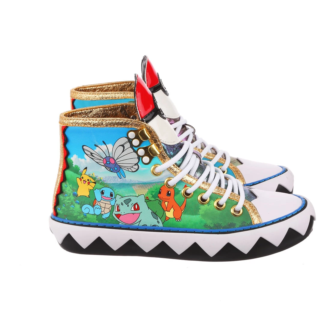 Want to show your love for Pokémon on the go? These sneakers are the perfect comfy cool addition to your wardrobe. Featuring a classic athletic silhouette with a graphic twist, the zig-zag pattern of the sole is a great contrast to the striking gold trim, and of course, the adorable Pokémon print on the side! Add them to your trainers kit today, before they disappear into the long grass! Featuring Pikachu, Butterfree, Squirtle, Bulbasaur, & Charmander.