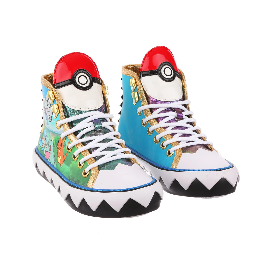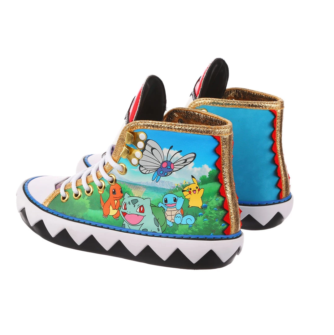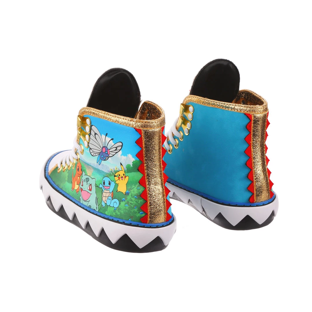 Want to show your love for Pokémon on the go? These sneakers are the perfect comfy cool addition to your wardrobe. Featuring a classic athletic silhouette with a graphic twist, the zig-zag pattern of the sole is a great contrast to the striking gold trim, and of course, the adorable Pokémon print on the side! Add them to your trainers kit today, before they disappear into the long grass! Featuring Pikachu, Butterfree, Squirtle, Bulbasaur, & Charmander.