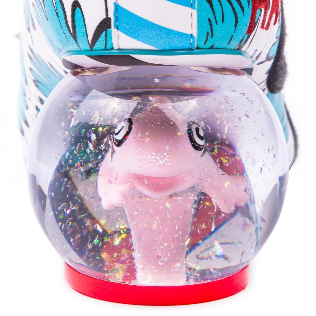 “Look at me!” This pair of shoes in our Dr Seuss collaboration feature character heels of the Fish in their bowl, an all-over repeat print of the fun Thing 1 and Thing 2, and the Cat in the Hat himself in pride of place on the toes of the shoes! A perfectly wonderful fun-derful pair of shoes!