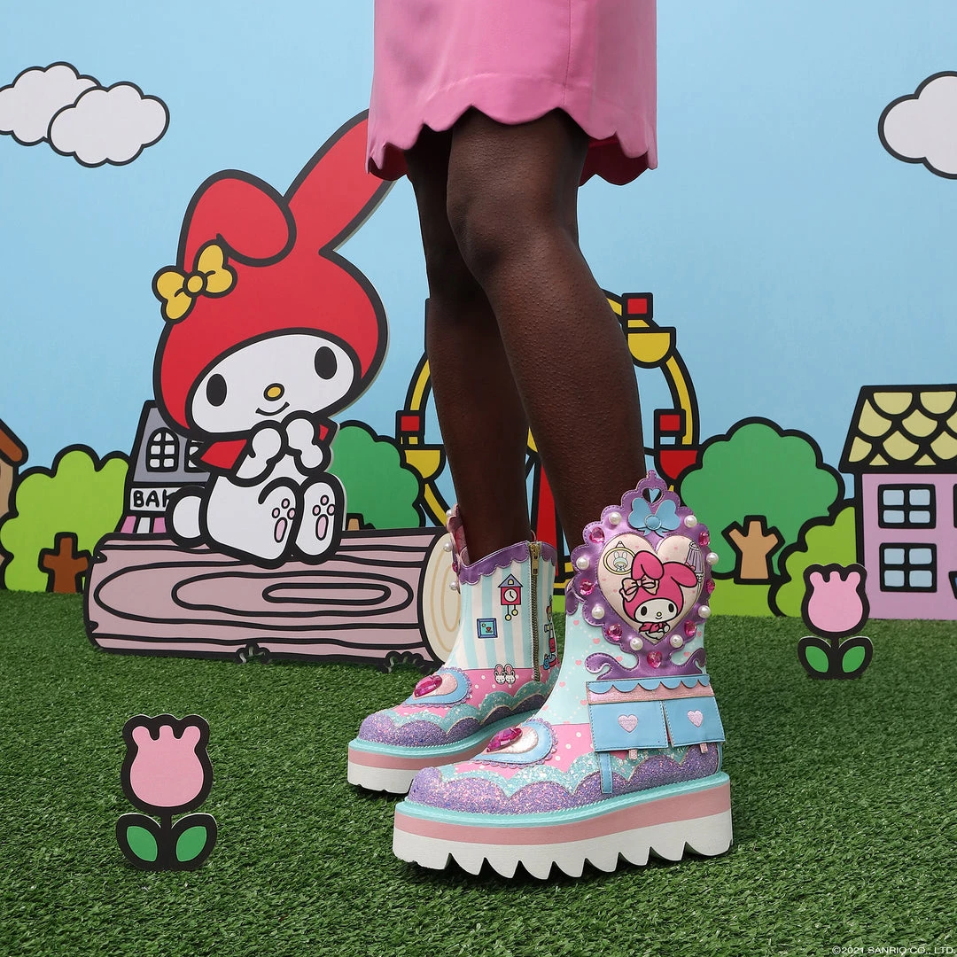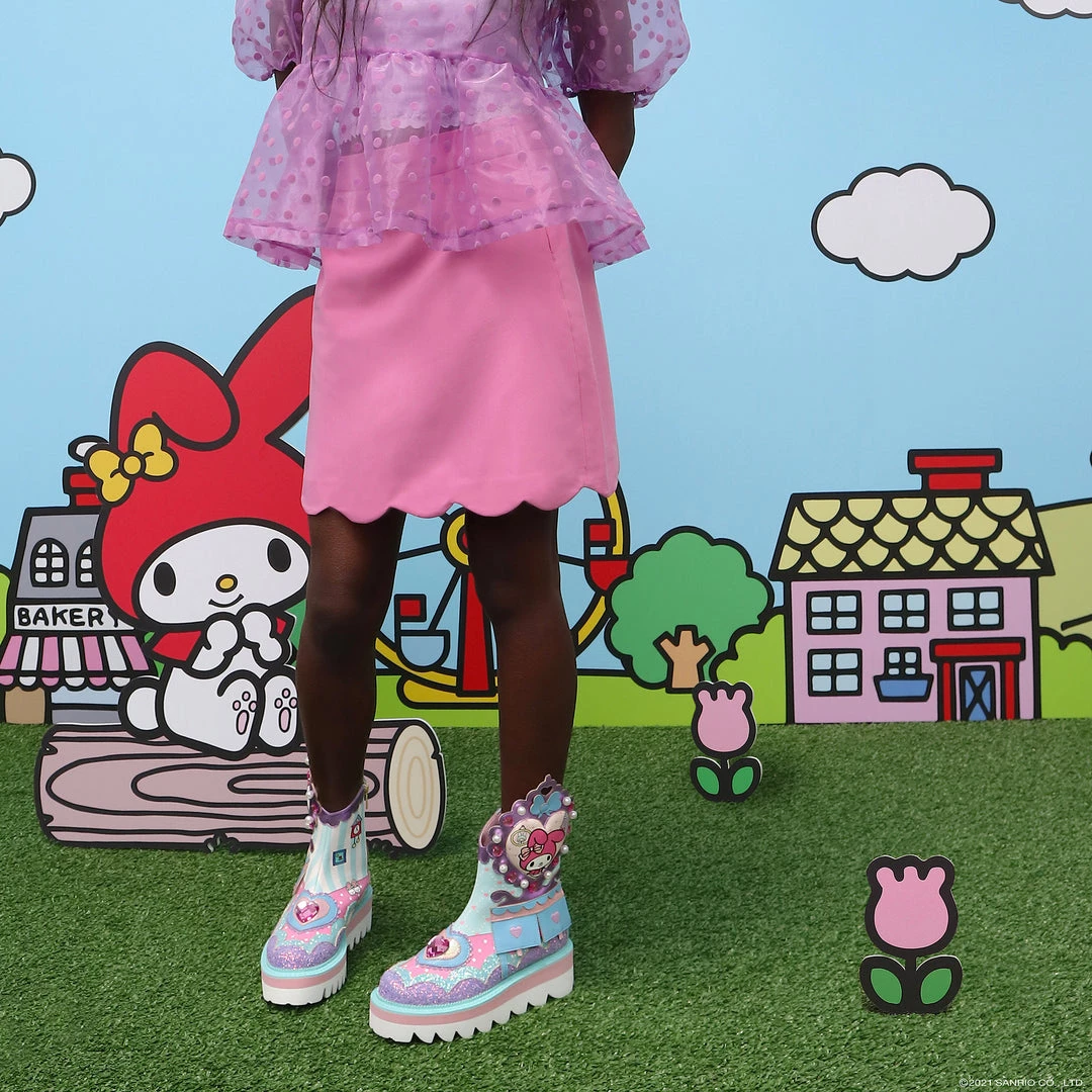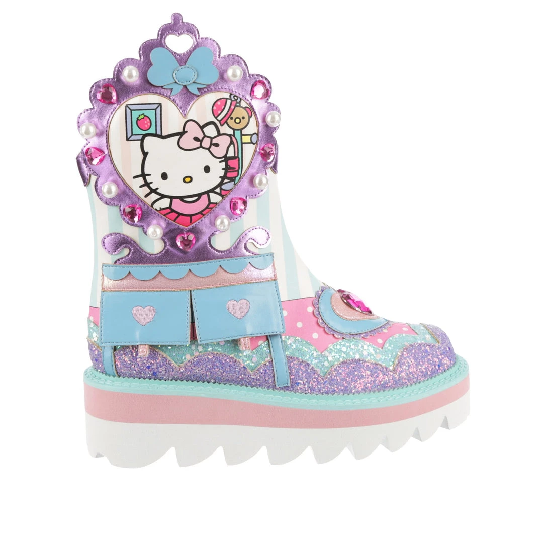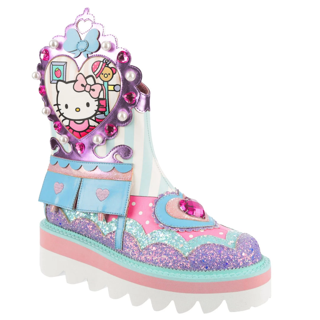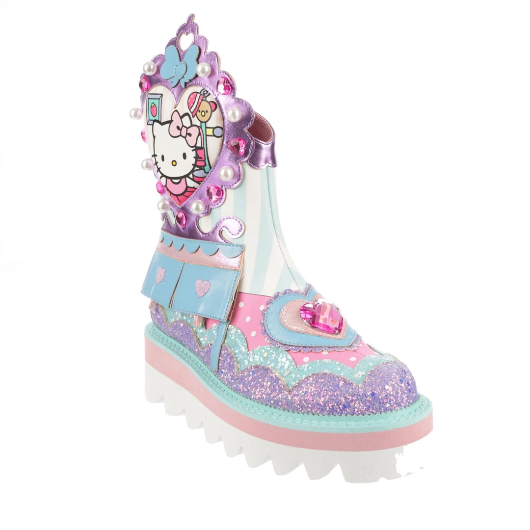 Getting ready can be so much fun, especially with a friend! These adorable boots feature Hello Kitty and My Melody in heart-shaped mirrors, surrounded by stunning pearls and gems! Open up the drawers underneath to see a cute surprise! Swathed in pastel colours and metallic textures – these statement boots aren’t to be missed!