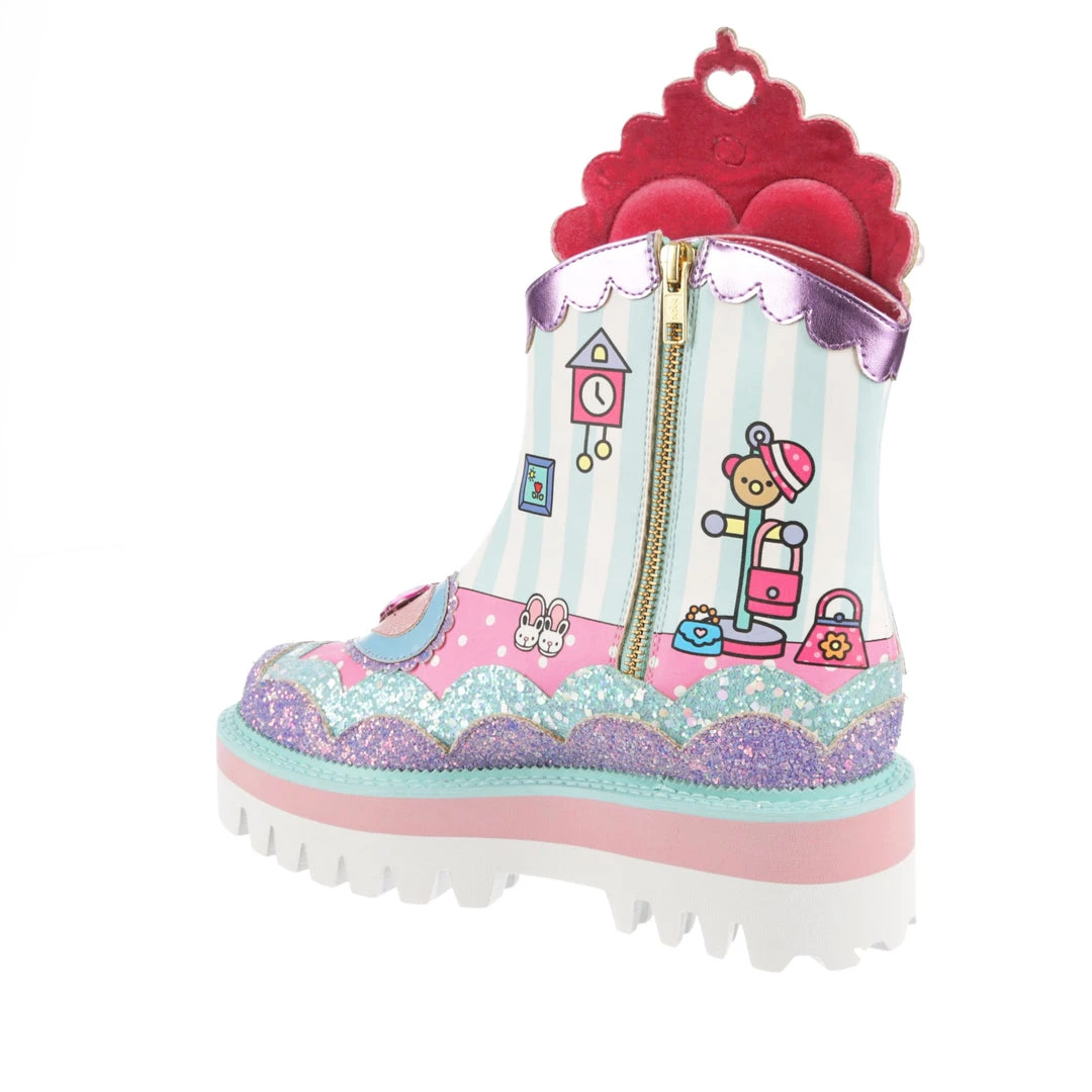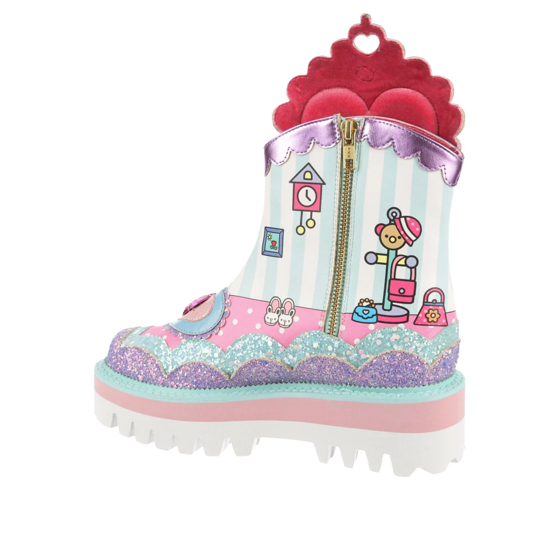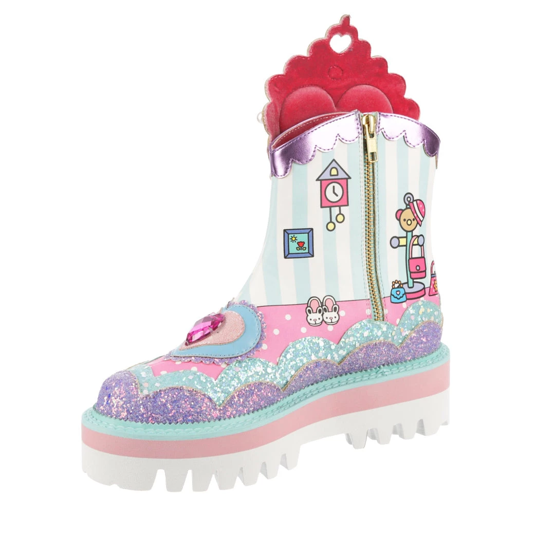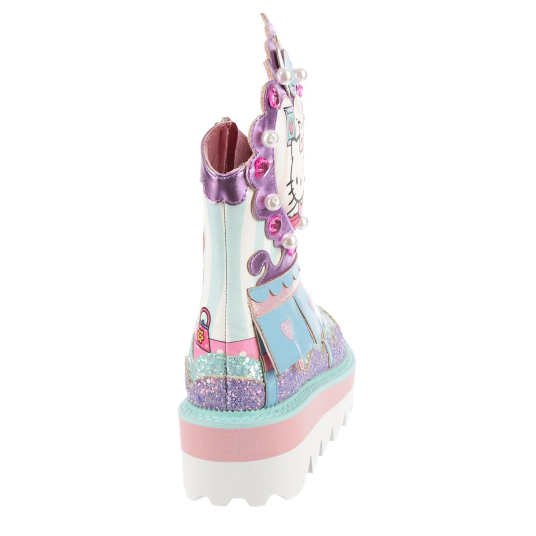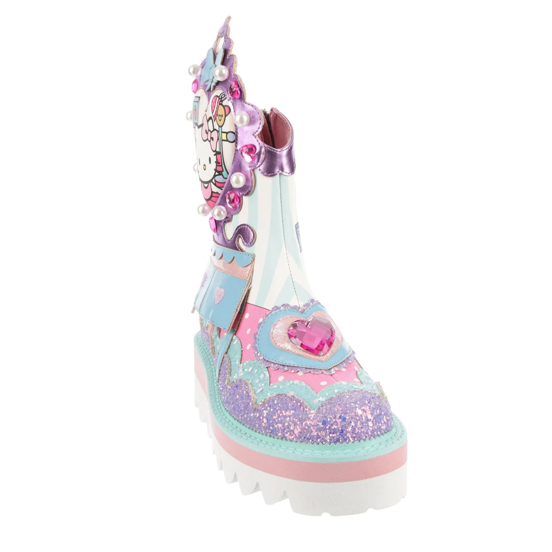 Getting ready can be so much fun, especially with a friend! These adorable boots feature Hello Kitty and My Melody in heart-shaped mirrors, surrounded by stunning pearls and gems! Open up the drawers underneath to see a cute surprise! Swathed in pastel colours and metallic textures – these statement boots aren’t to be missed!