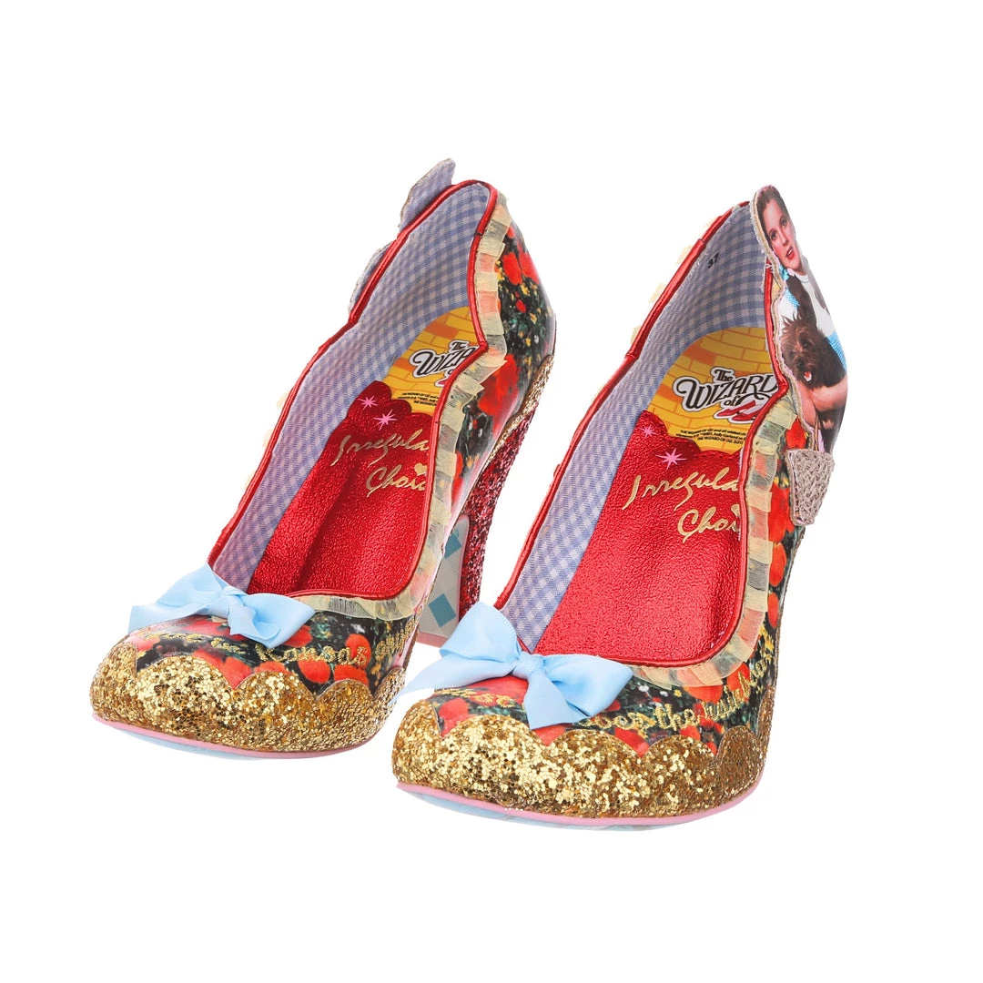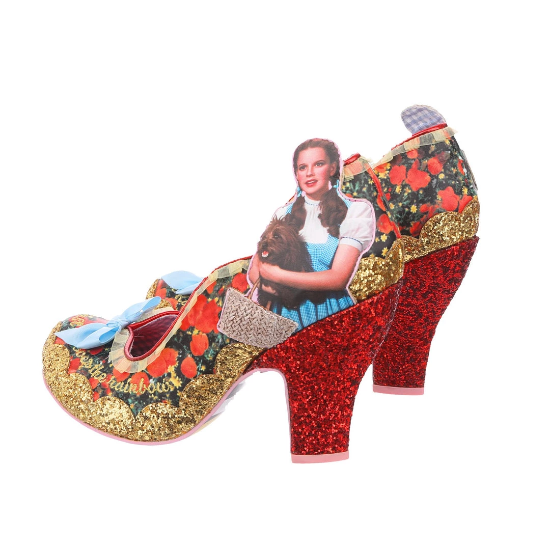 Are you feeling sleepy? Maybe its just these dreamy heels! Featuring a striking print of the iconic poppy field, these courts are bursting with character! A print of Dorothy and Toto™ is paired with embroidered phrases from the movie and an adorable baby blue bow to the toe. Sure to show the world that you love the Wizard of Oz™ but also have mega style!