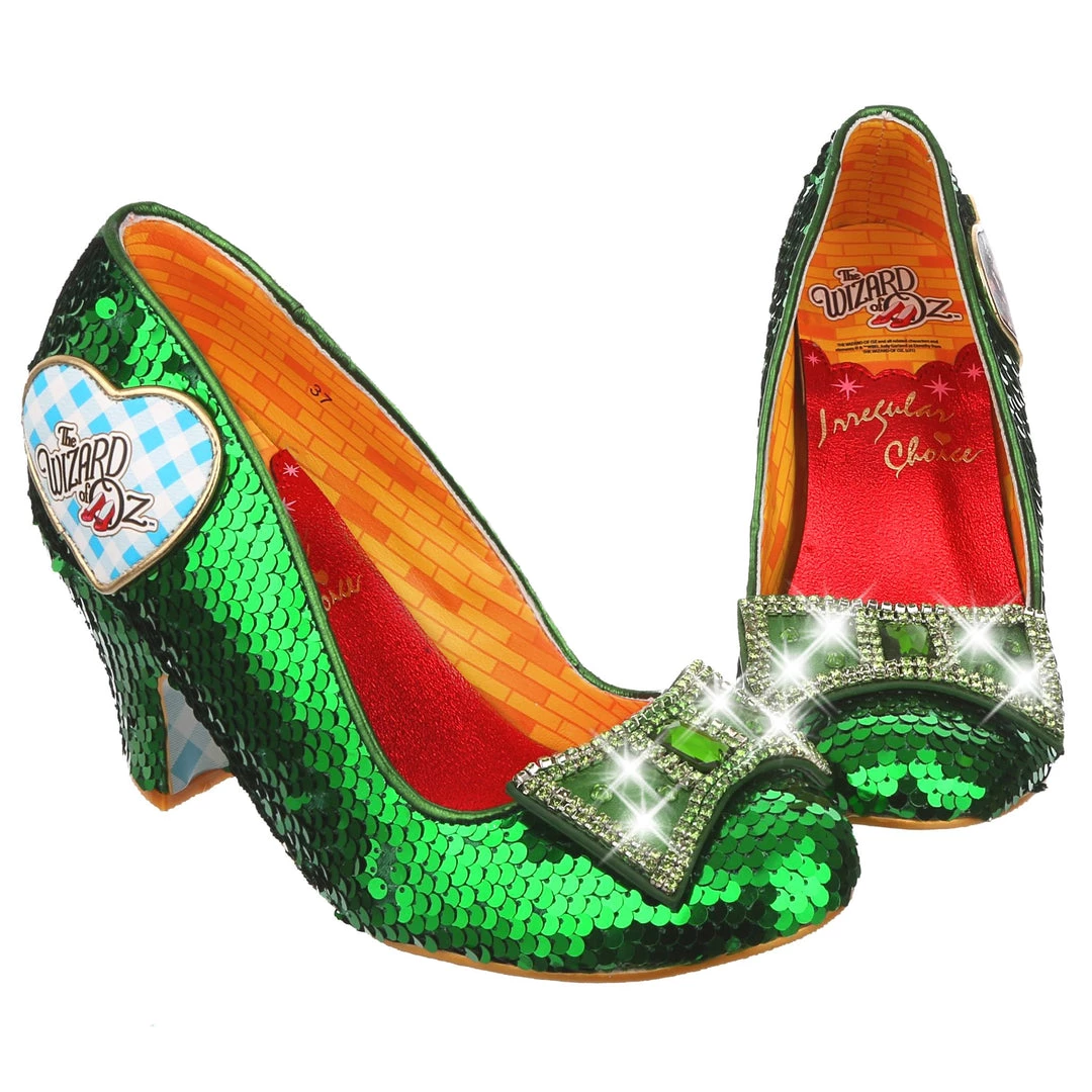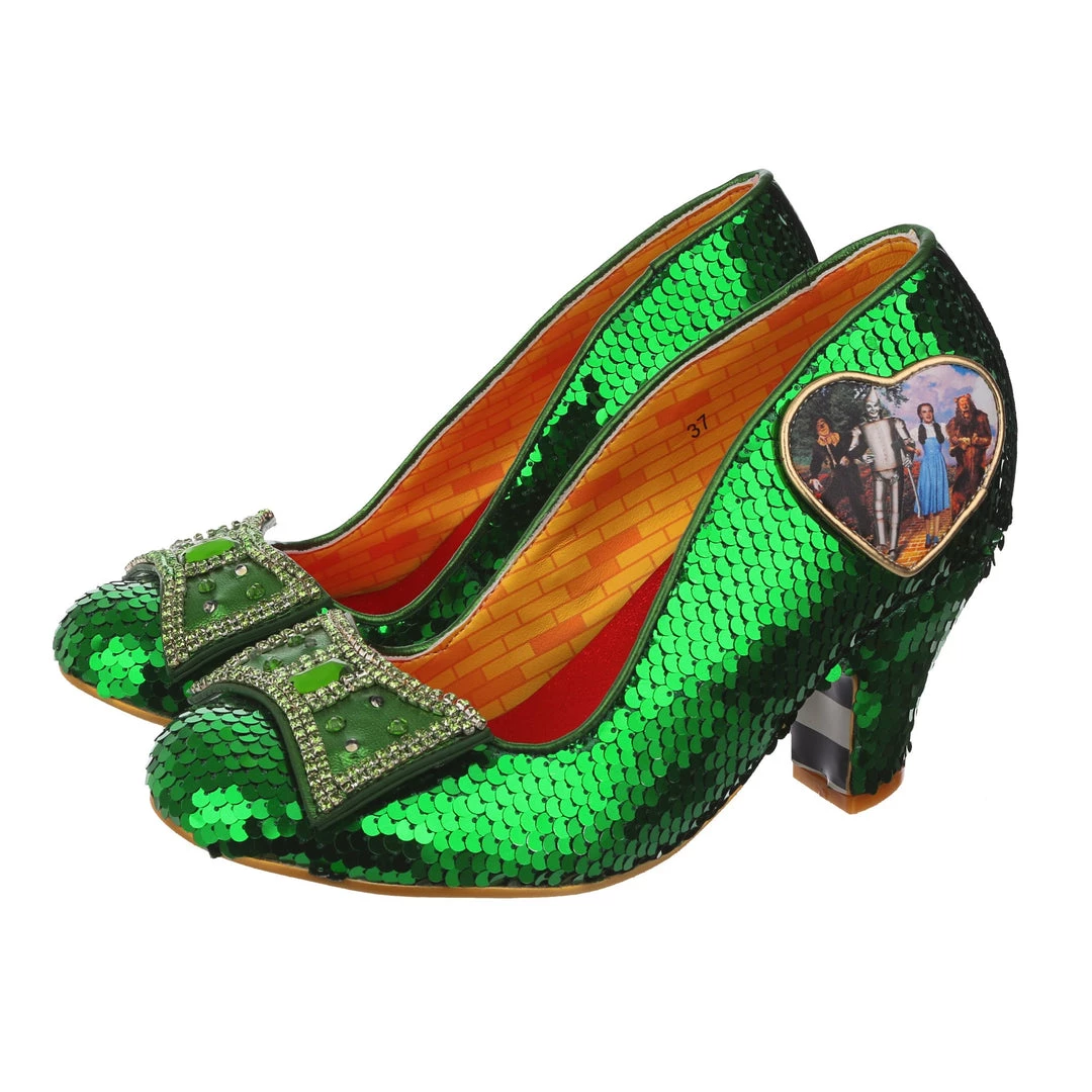 Feel like a citizen of the Emerald City™ in these snazzy shoes! With all the glamour of the Ruby Slipper™, these gorgeous green glories are encrusted with shimmering emerald sequins, a light up LED bow on the toe, and adorable hearts on the back featuring the Wizard of Oz™ logo and a movie still. So get skipping and add these lovelies into your life today!
