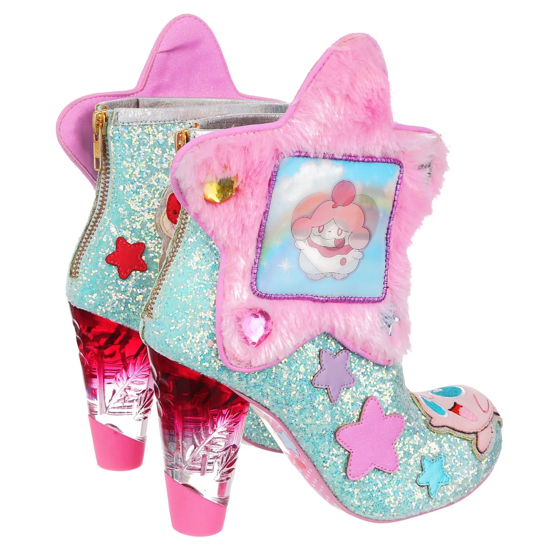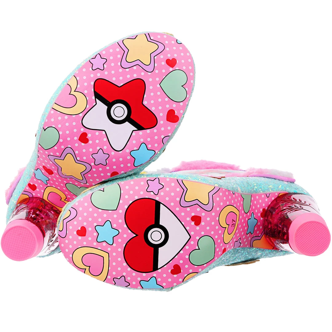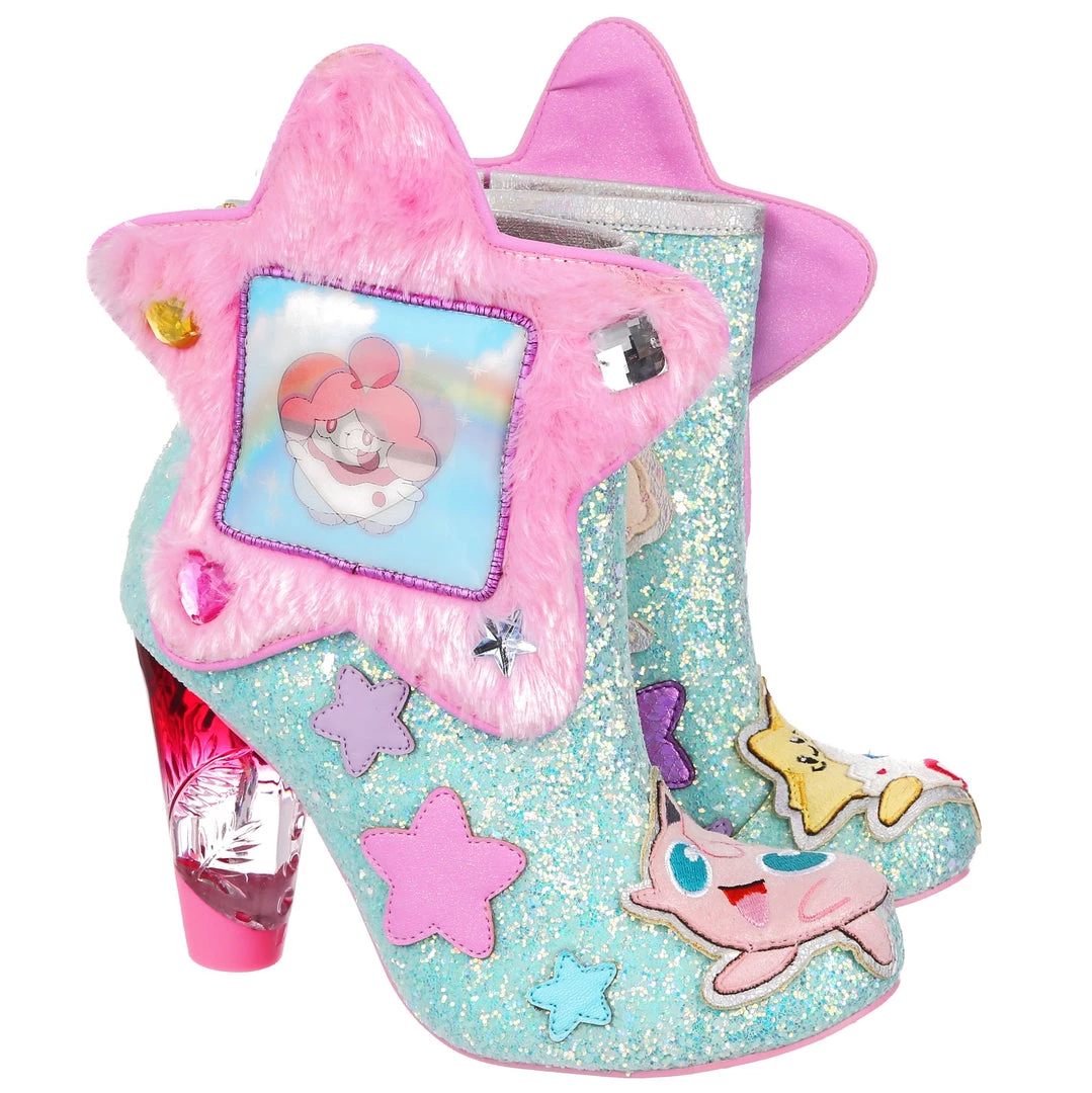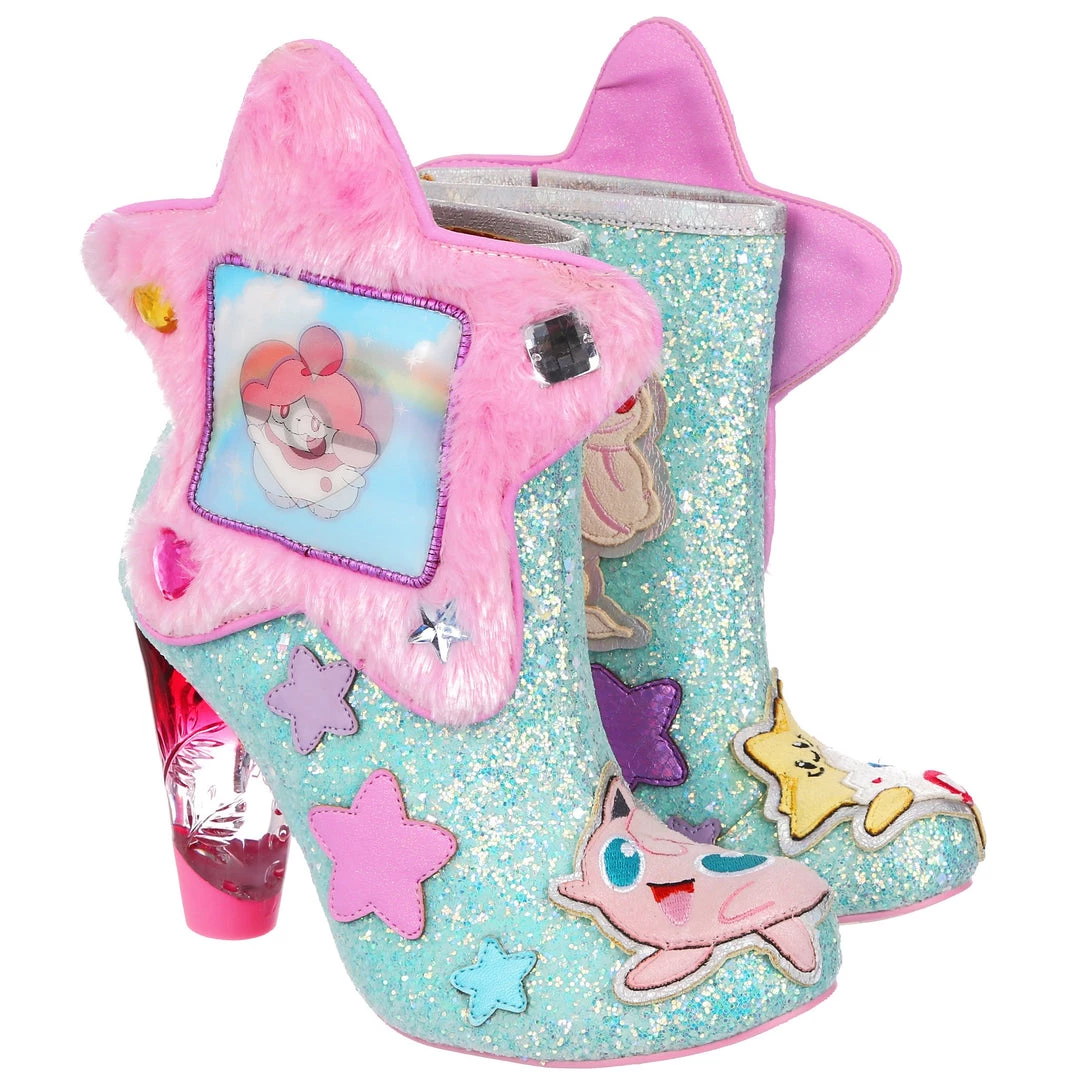 Fairy fabulous, these heels are sure to make you feel like you are on cloud nine! Featuring some of your favourite fairy-type Pokémon dotted all around the sparkling mint glitter upper, and even a lenticular image in the fuzzy pastel star on the side of the booties! All brought together by our gorgeous statement ombre lucite heel so you really feel like you are floating on air! Featuring Jigglypuff, Togepi, Slurpuff, Clefairy, Sylveon, & Alcremie.